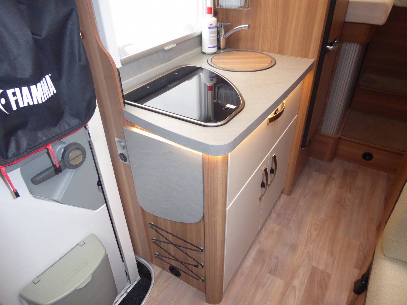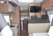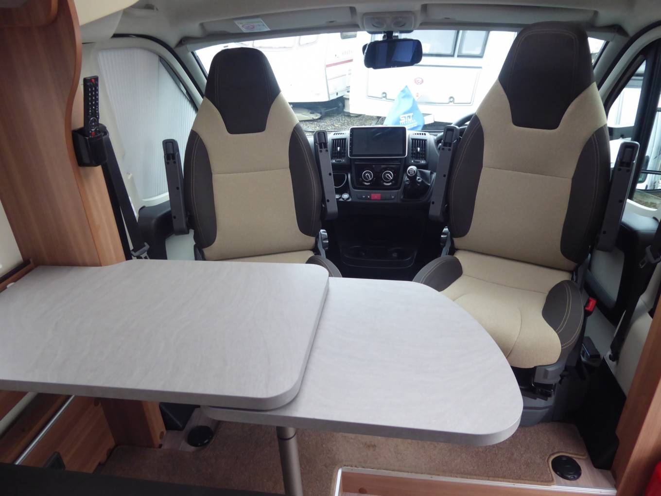 Behind the cab is a nearside forward facing half dinette (with two additional seat belts) for dining and leisure, and this area can be further enhanced for guests by the utilisation of the swivel cab seats and table extension. This area can be converted into an additional single berth.