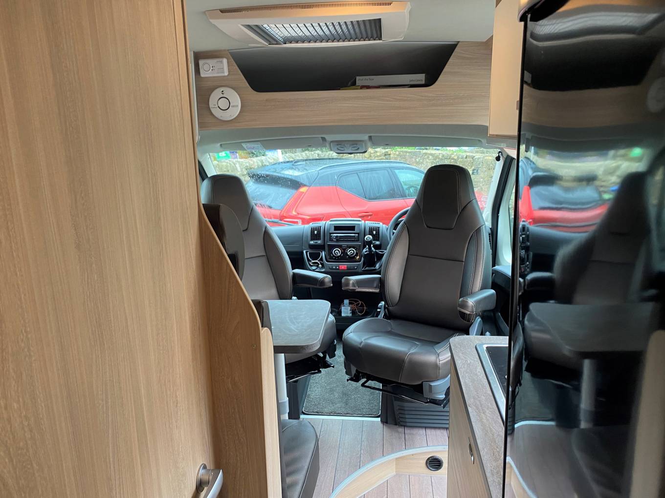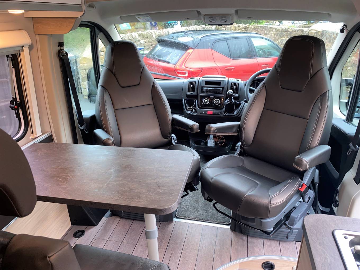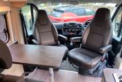 Step inside and you are greeted by the dinette area with the drivers and passenger swivel seats and a removable table everyone can enjoy a meal together.
