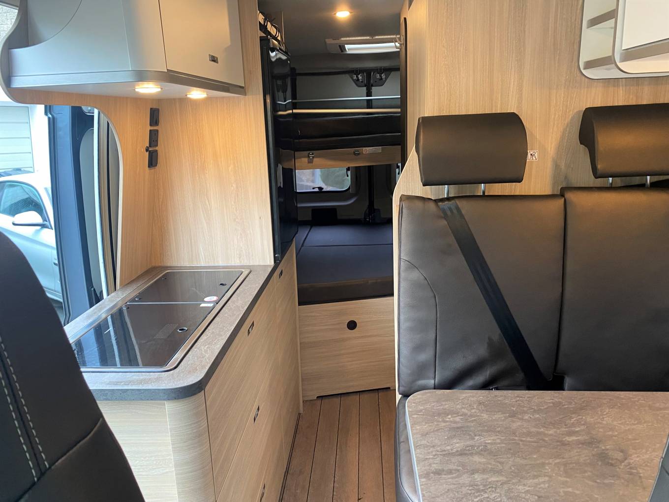 At the Rear of the motorhome you have the bunk beds, the top bunk can be either a single or double and the bottom bunk is a generous size double bed.