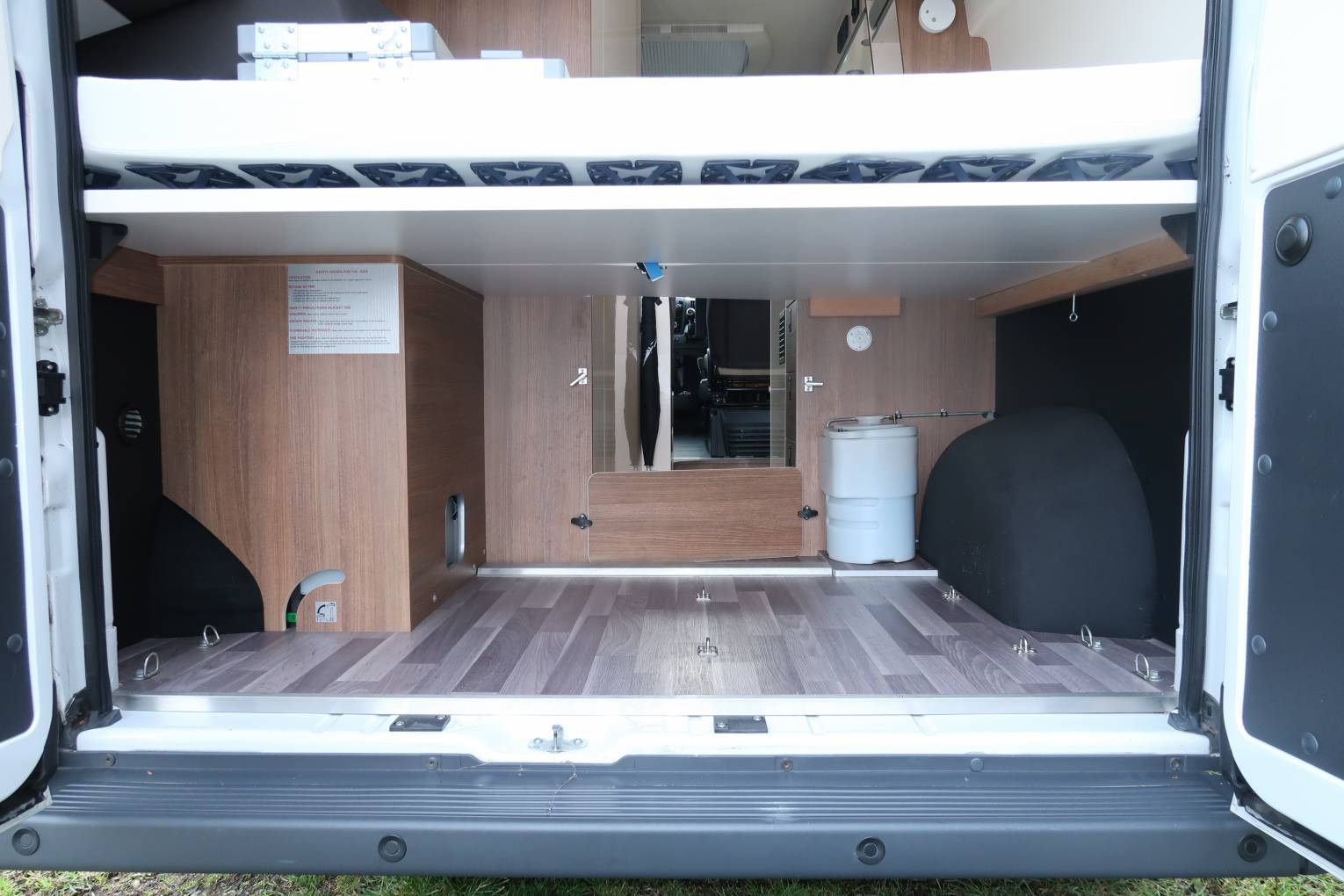 At the rear is the transverse double bed which has a high quality breathable memory foam mattress sat on top of Froli springs which provide amazing comfort. Underneath the bed is a massive storage area and this is one of the highlights of this vehicle as it is rare to get as much storage space as this in a 5.4 metre campervan.