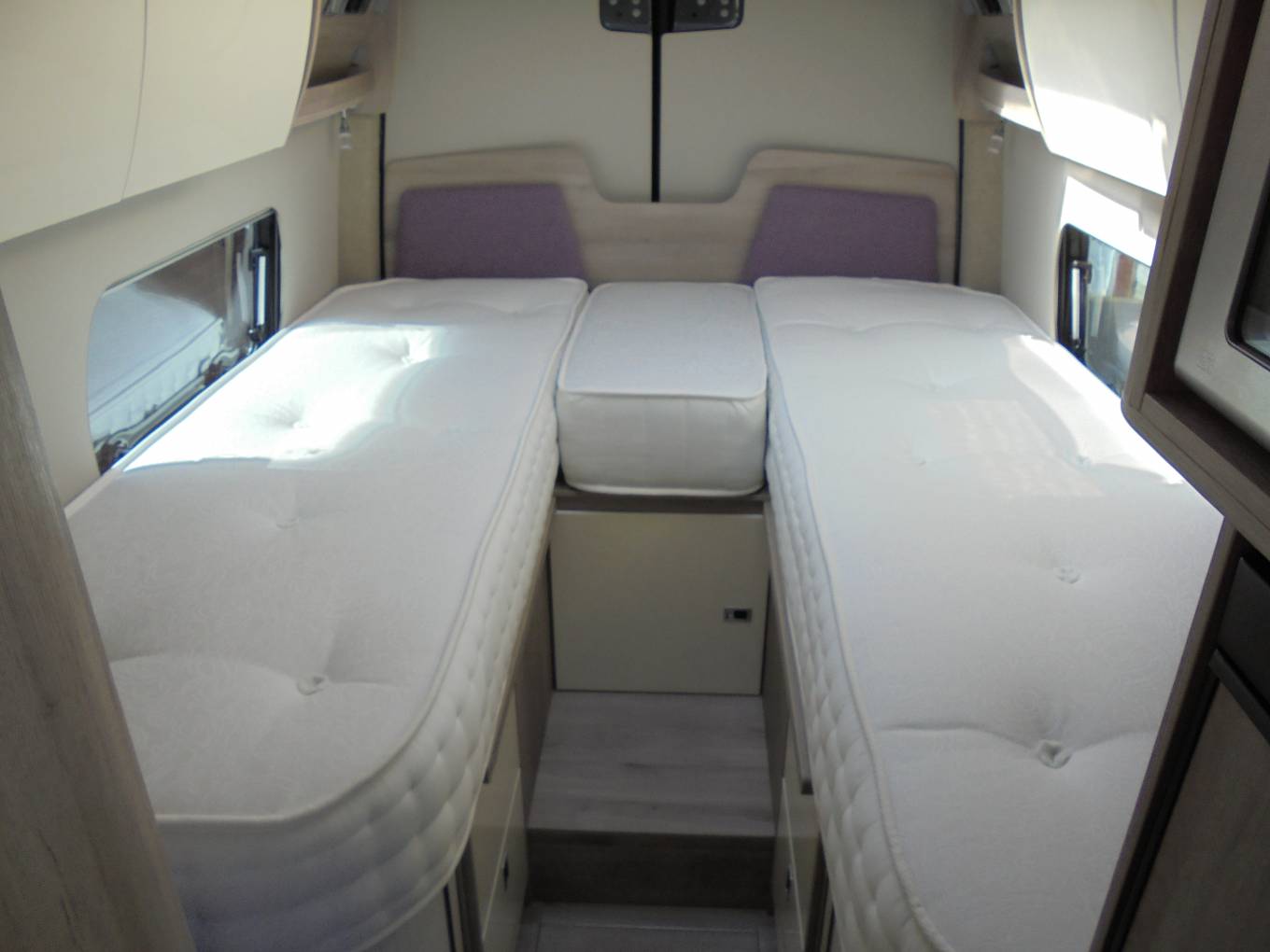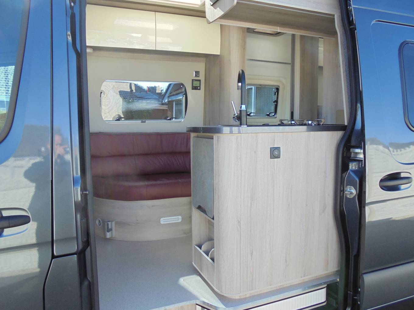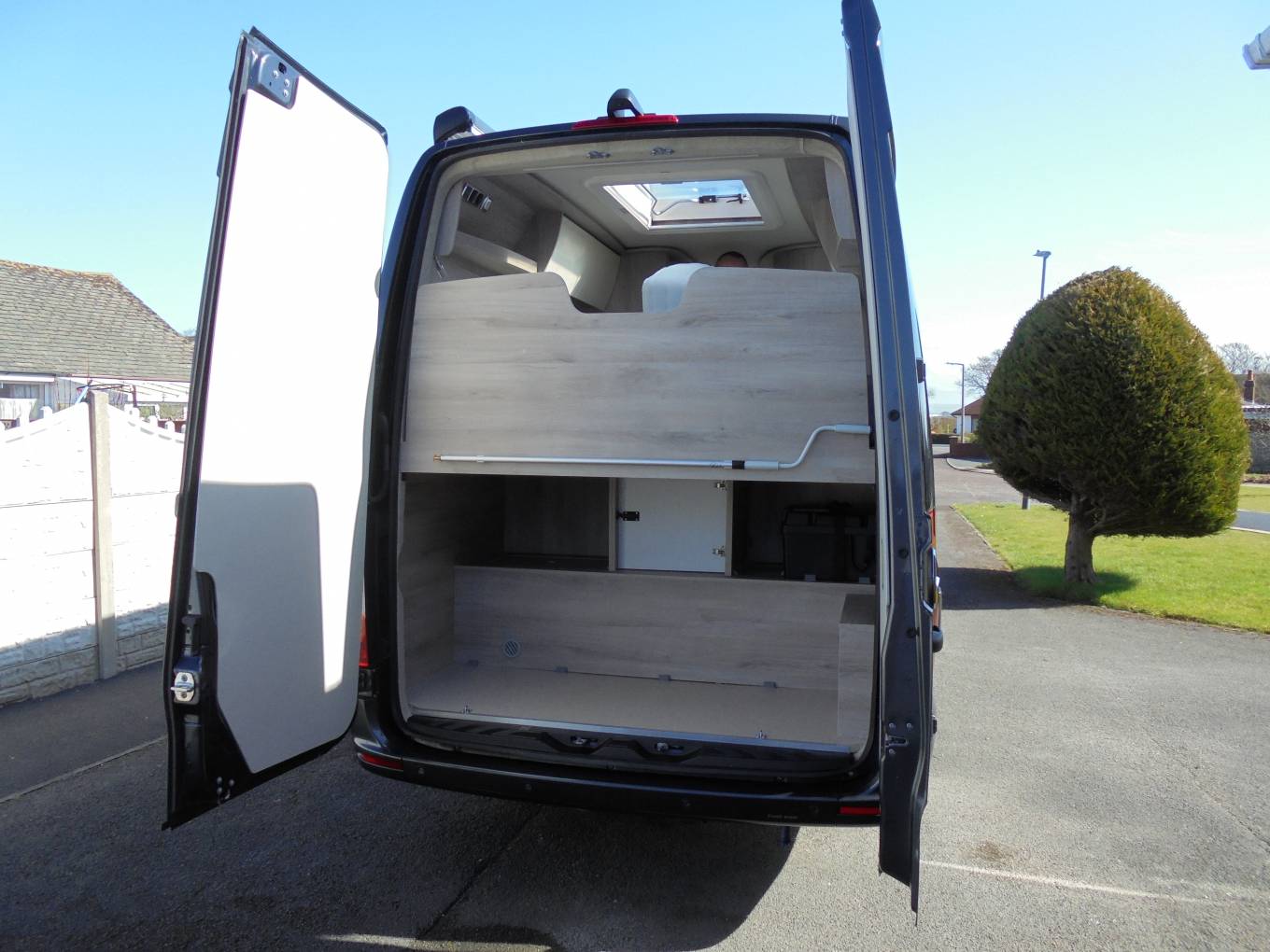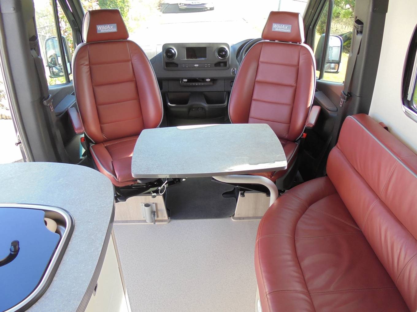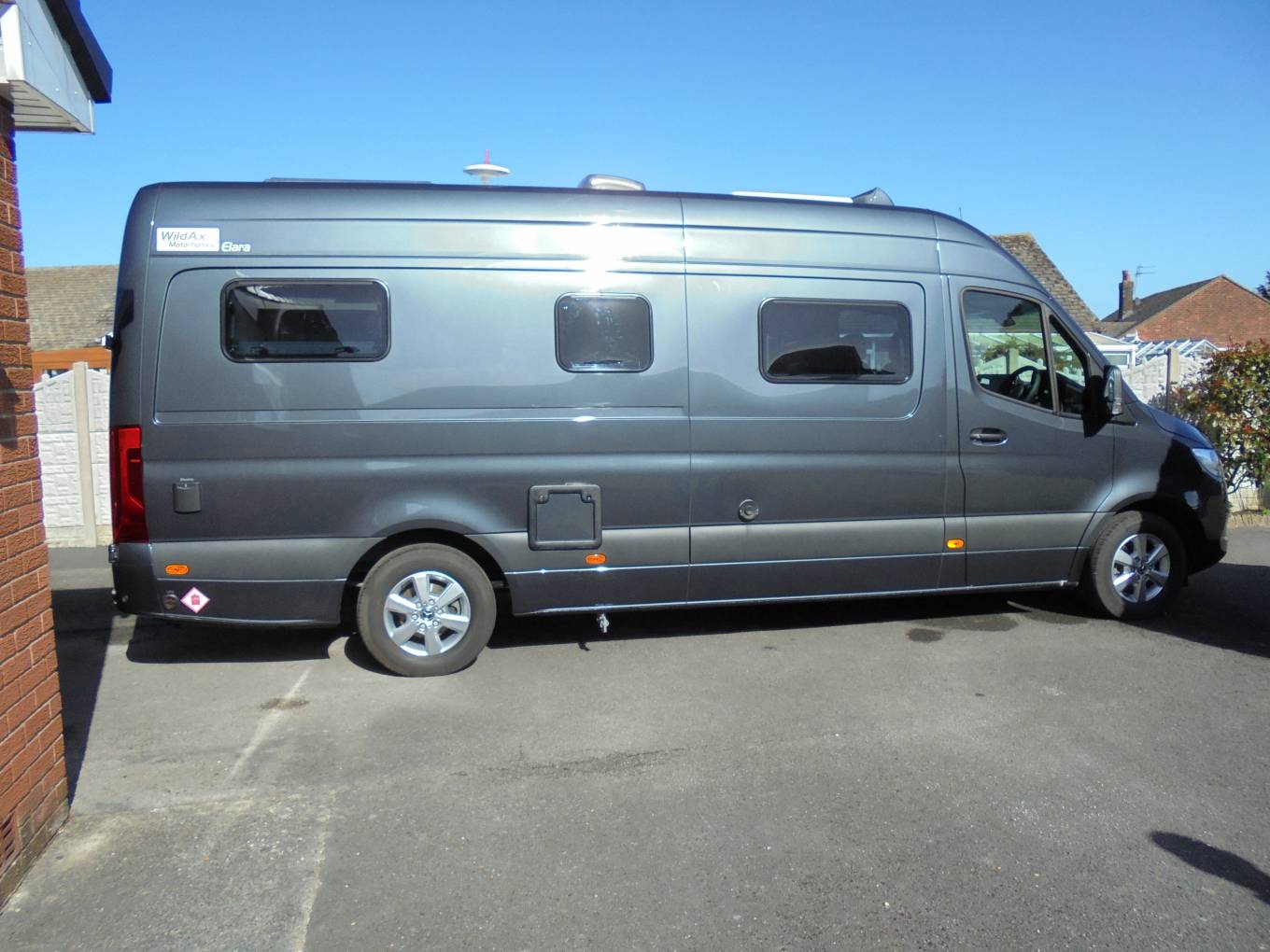 WildAx Elara 2020, this is the ultimate luxury 2 berth campervan in immaculate condition with 1,253 miles on the clock and using the Mercedes 316 with 160bhp and automatic gear box. At the rear are 2 single beds with pocket sprung matress which can be made into one large double. Under the bed are storage draws and a large garage that can be accessed from inside or from the rear doors. The well designed bathroom has a shower and cassette toilet and the well equipped kitchen has a large fridge, induction/ gas hob, oven, grill and microwave. At the front is the lounge area finished in red leather with side settee and captains seats. It comes with Cab Air Con, Cruise Control, Alarm, Rear Camera, Front and Rear Sensors, Sat Nav and DAB Radio. It also comes with Truma Combi heating and hot water, 40L Refillable LPG Tank, Solar Panel and 2 Leisure Batteries. A truley stunning van, call for more photos and information.