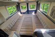 The cab area is stylish and sleek and you have 2 seats, the passenger seat which swivels, air con, electric windows and mirrors and a reversing camera to ensure you have a comfy drive to and from your next adventure.