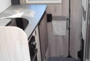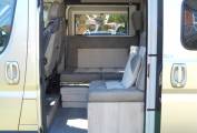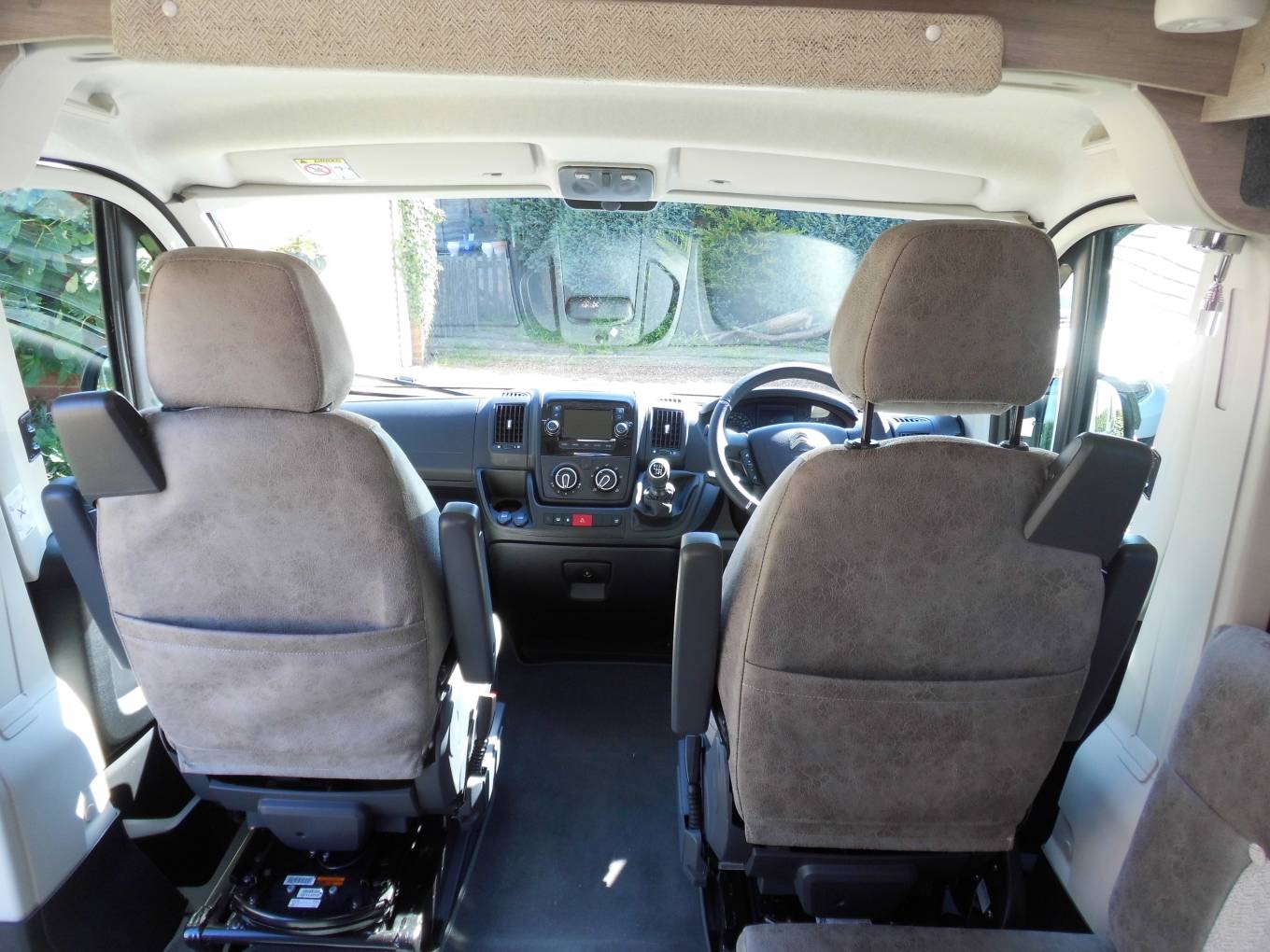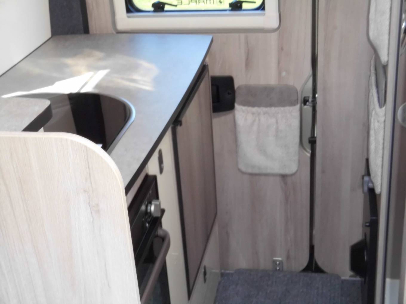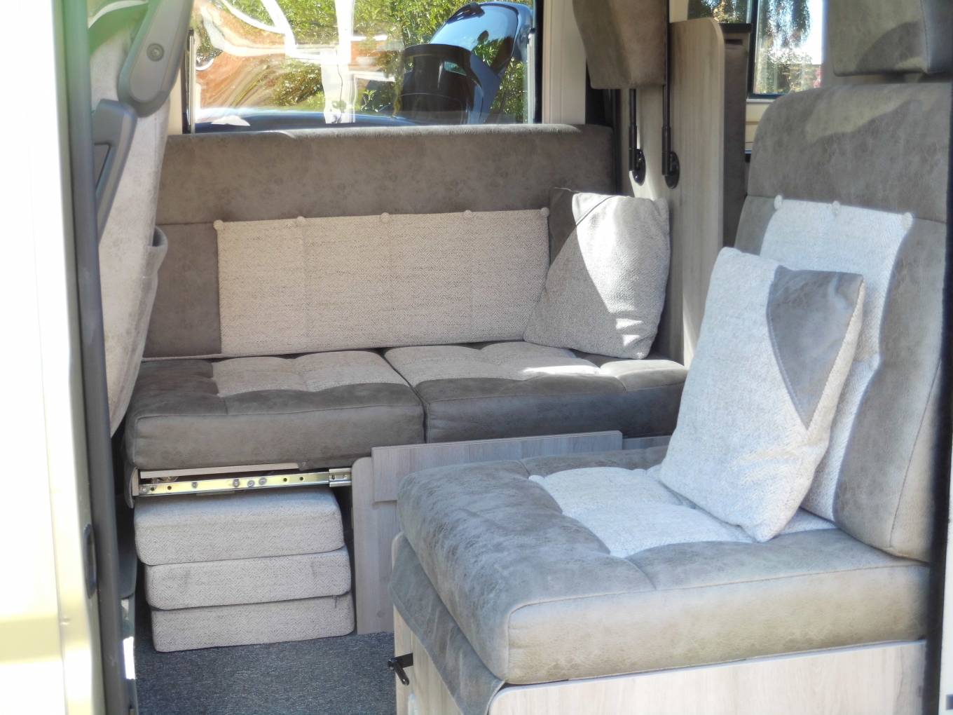 The rear travel seats slide in seconds to become a large double bed (188cm) or also into 2 sofas so that you can sit around the tables for a meal! In addition with the supplied cushions you can make 2 x single beds (178cm) leaving the central isle free to access the kitchen and washroom!