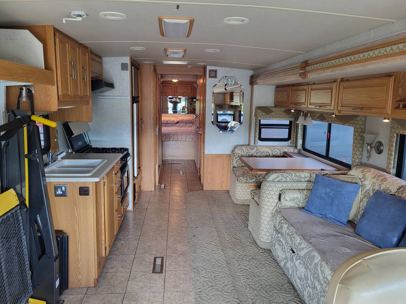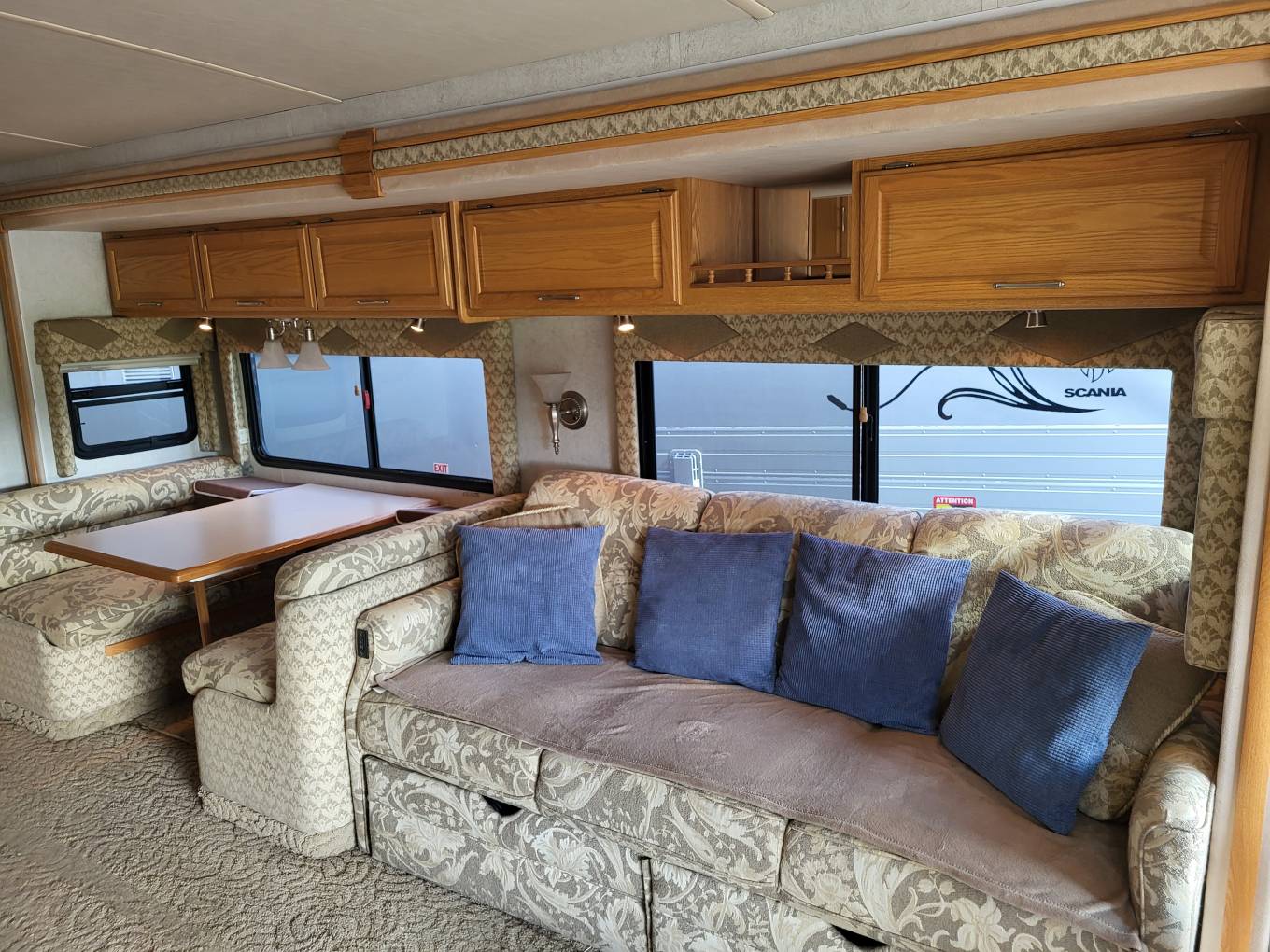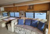 Behind that is a sizable dinette offering comfortable seating for 4 or more with a wheelchair at the head of the table. This also makes into a double bed if required.