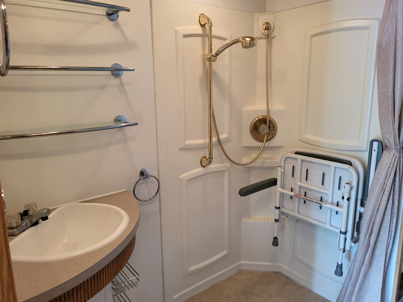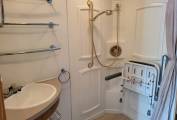 Opposite you are presented with your wheelchair accessible wet room with seat.