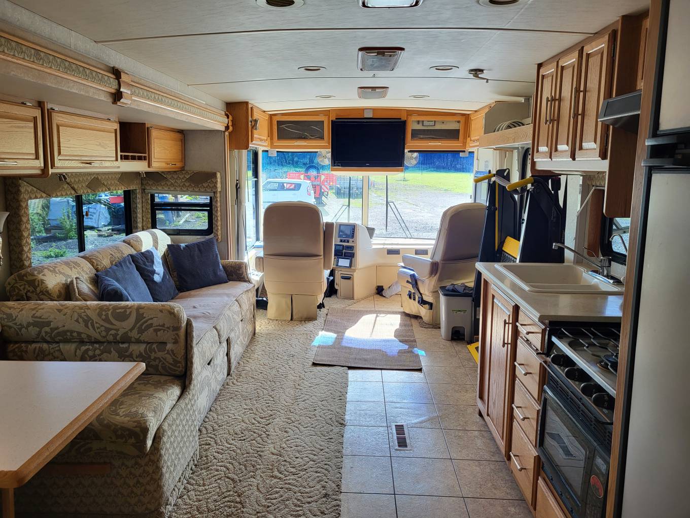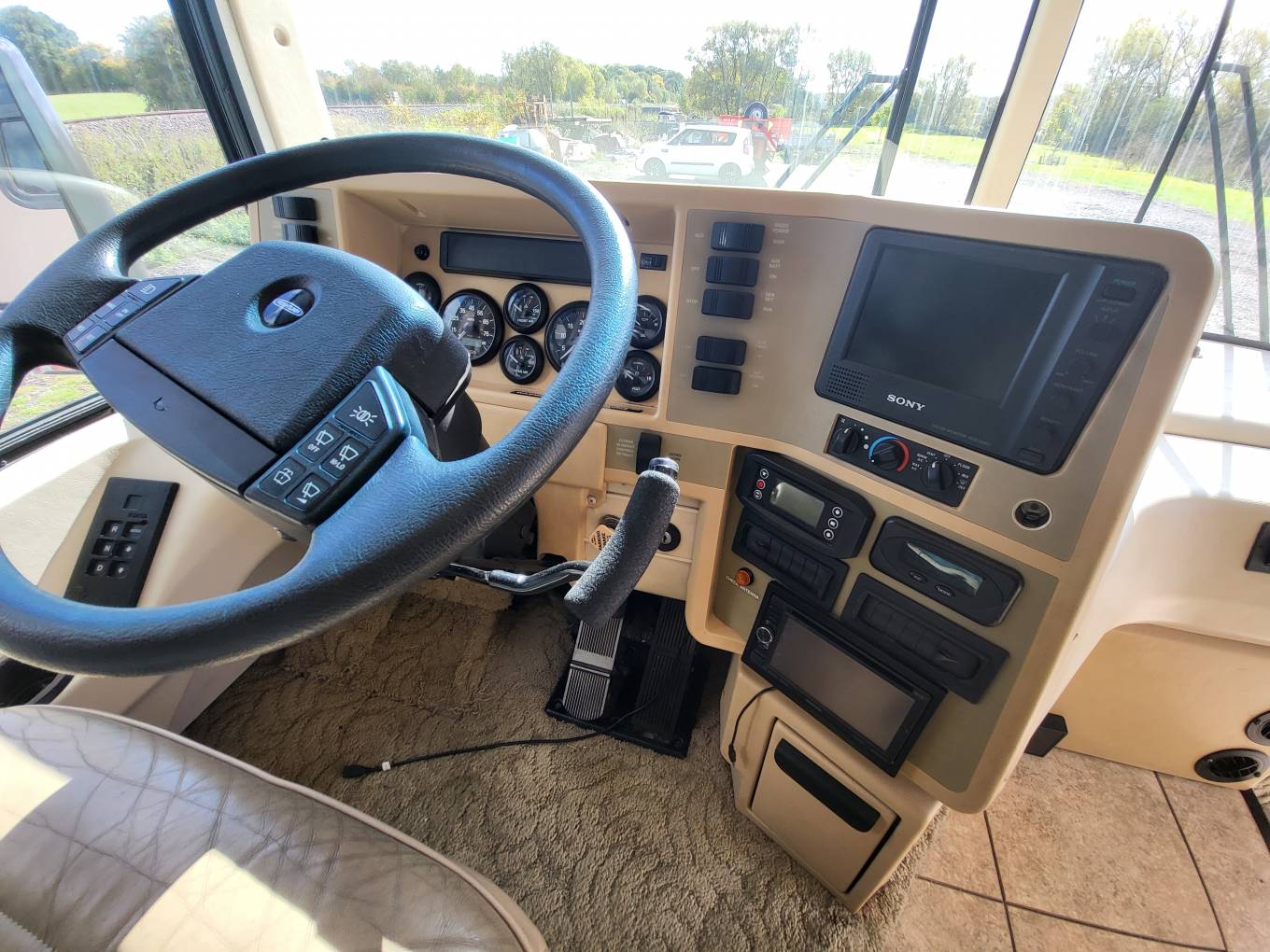 The vehicle is powered by a rear mounted Caterpillar 7200cc diesel engine mated to an Allison 6 speed automatic gearbox. The vehicle also has air suspension and an integrated levelling system and towbar for trailers. It is equipped with cameras to the side, front and rear to aid driving. It also has some very impressive roof horns that are guaranteed to wake up the camp site! Driver’s equipment such as sat nav, android stereo system are also provided.