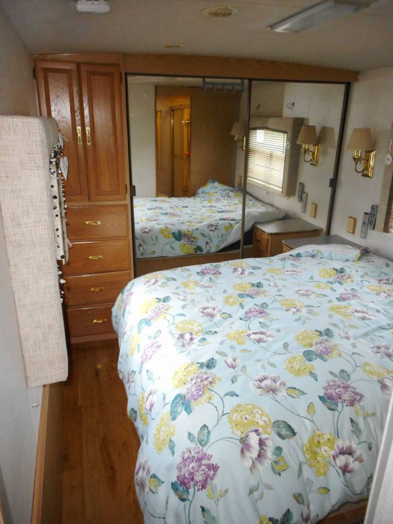 Located just outside Chippenham, Wiltshire is this much loved and cared for 1996 Winnebago Vectra RV. With only 3 owners and 41,000 miles from new this RV offers a couple great value liveaboard travelling. There is a fixed transverse island double bed in the rear bedroom, and lots of storage in the fitted wardrobes, drawers, bedside cabinets, and beneath the bed. The bedroom tv stows neatly away when not in use. The light and airy shower room has a porcelain lavatory, a sink and screened shower offering plenty of space. The shower room may be accessed from the bedroom or the living area. Mid home, the kitchen has a tower fridge with a separate freezer above, a microwave, and a Belling cooker with four gas hobs, grill and oven. There is a round stainless-steel sink with drainer, and lots of counter space and storage. Opposite the kitchen is the dinette which can be quickly converted into an adult size single berth. Forward of this is the living area which has a fixed double sofa and an adjustable tub seat opposite. The tub seat has a lap belt for travelling. Both Captains chairs swivel making a nice, social area. The present owners have had the furnishing reupholstered in beautiful cream leather. There is a 32-inch tv above the cab which provides channels via the Oyster satellite system or the regular tv aerial. This Winnebago offers all the refinements of an American RV, with an on-board generator, electric hook up, hydraulic levellers, air-conditioning throughout, gas and diesel heating, an underslung Autogas tank for appliances, 4 leisure batteries, 2 solar panels, awning sides, and more. On-board electrics supply 12V, 110V and 240V. This Winnebago is 34ft long and is based on a diesel Chevrolet 6500cc chassis. It weighs just under 7500kg and may be driven on a regular car licence with a C1 classification. This was acquired automatically on licences issued before 1 January 1997. If you are a couple seeking spacious comfort with American pizzazz please call Tonia or Martin for the full photo album and video tour.